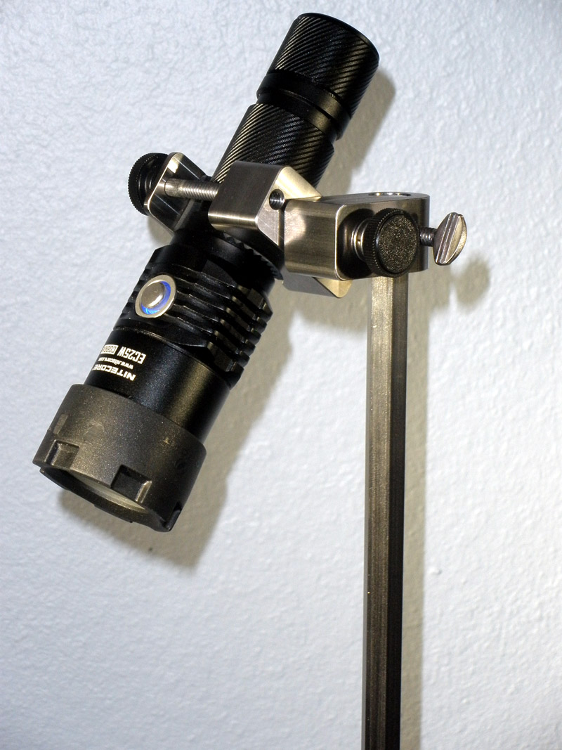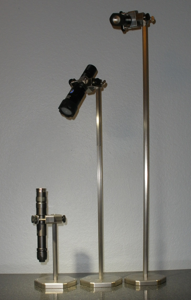 - Industrial grade rubber adjustable gripper pads bonded to stainless steel clamp will hold single wide AAA, AA, 18650 LED flashlights between 1.020 dia. and .550 body diameter (8 oz weight limit on std. only base)